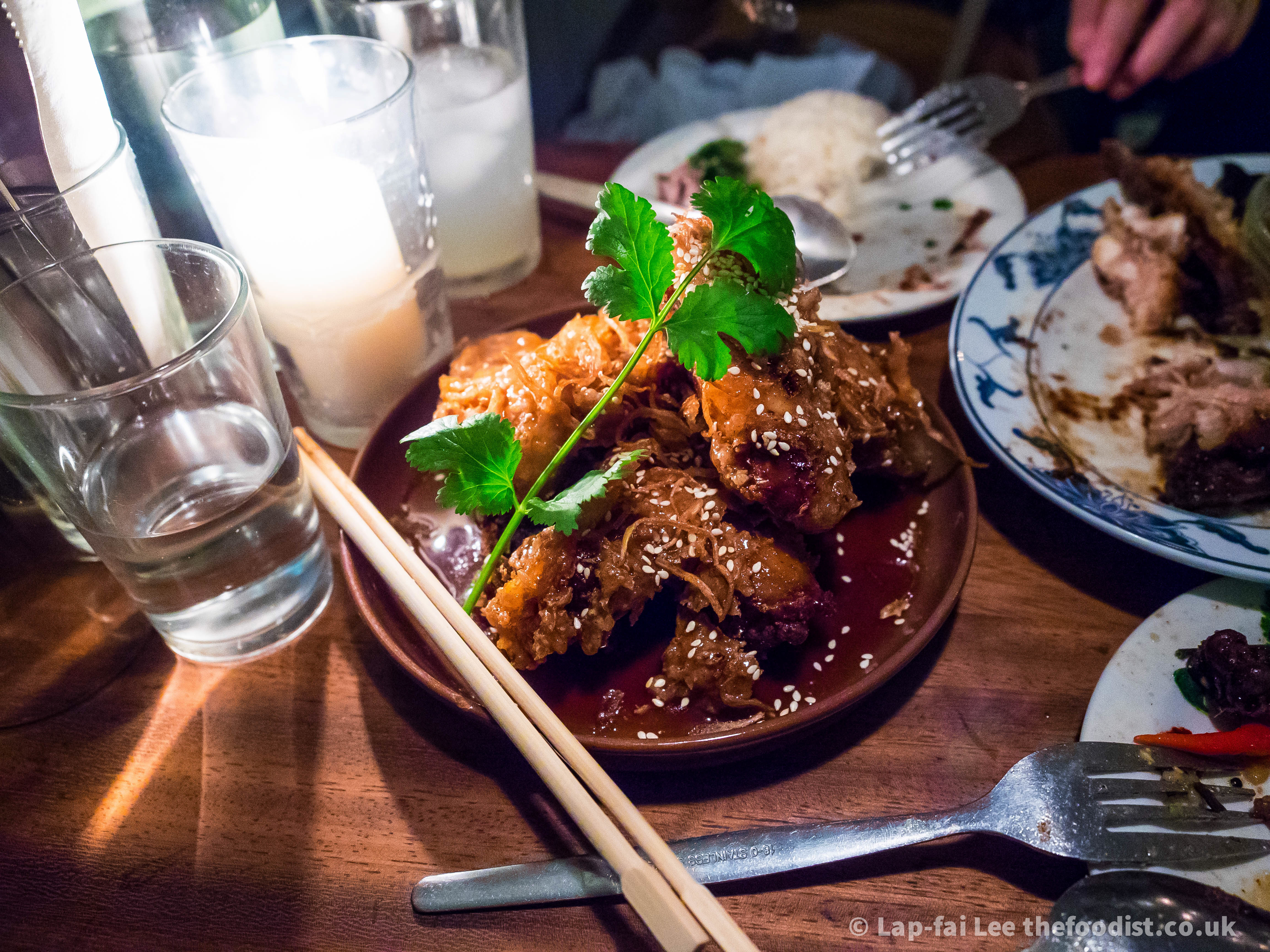 A spate of, ok two, new Thai restaurant openings in London has the capital’s food elite frothing with excitement. The chefs behind Som Saa in Hackney and Smoking Goat in Soho come from the same Northern Thai stable The Begging Bowl in Peckham. I had no expectations from either as I’ve never been to Peckham or Thailand for that matter. But I do love cooking Thai food and I’m sure Peckham is lovely this time of year. Som Saa is by all accounts authentic Northern Thai whereas Smoking Goat is better described as Thai influenced smoky bbq. You’d think that being a foodist I would prefer Som Saa but it was the smack-in-the-face sweet and sticky deliciousness of Smoking Goat that won me over. The standout dish of the dozen or so that we tried in the two restaurants was the Smoking Goat’s Fish Sauce Chicken Wings, and it’s not even Thai!