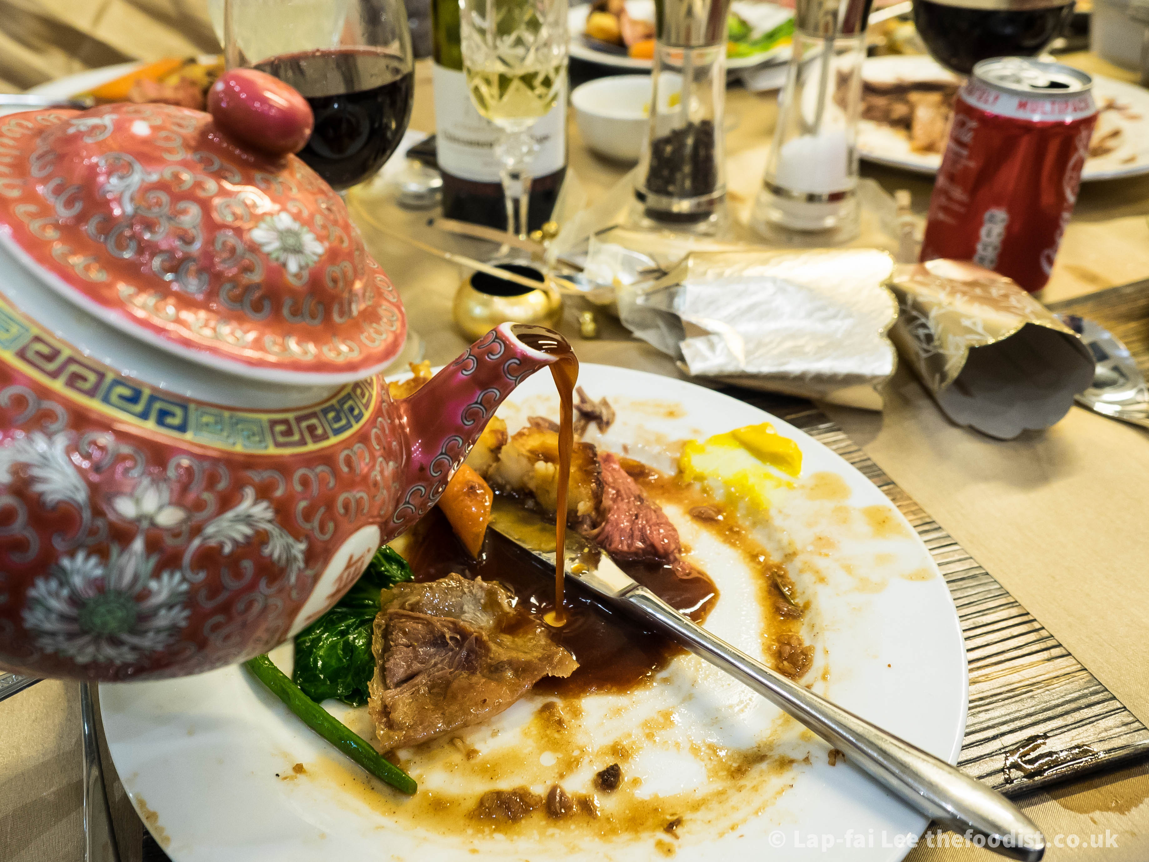 The family sit around chatting, boozing and watching movies until the evening meal. We can barely move but we manage scoff a huge Malaysian style chicken curry that’s been bought in and I muster up the energy to cook prawns in black pepper sauce, lobster tails and some veg. To round everything off and because it easier to digest the leftover piglet was made into congee. Let’s not be in any doubt that Chinese people know how to feast properly.