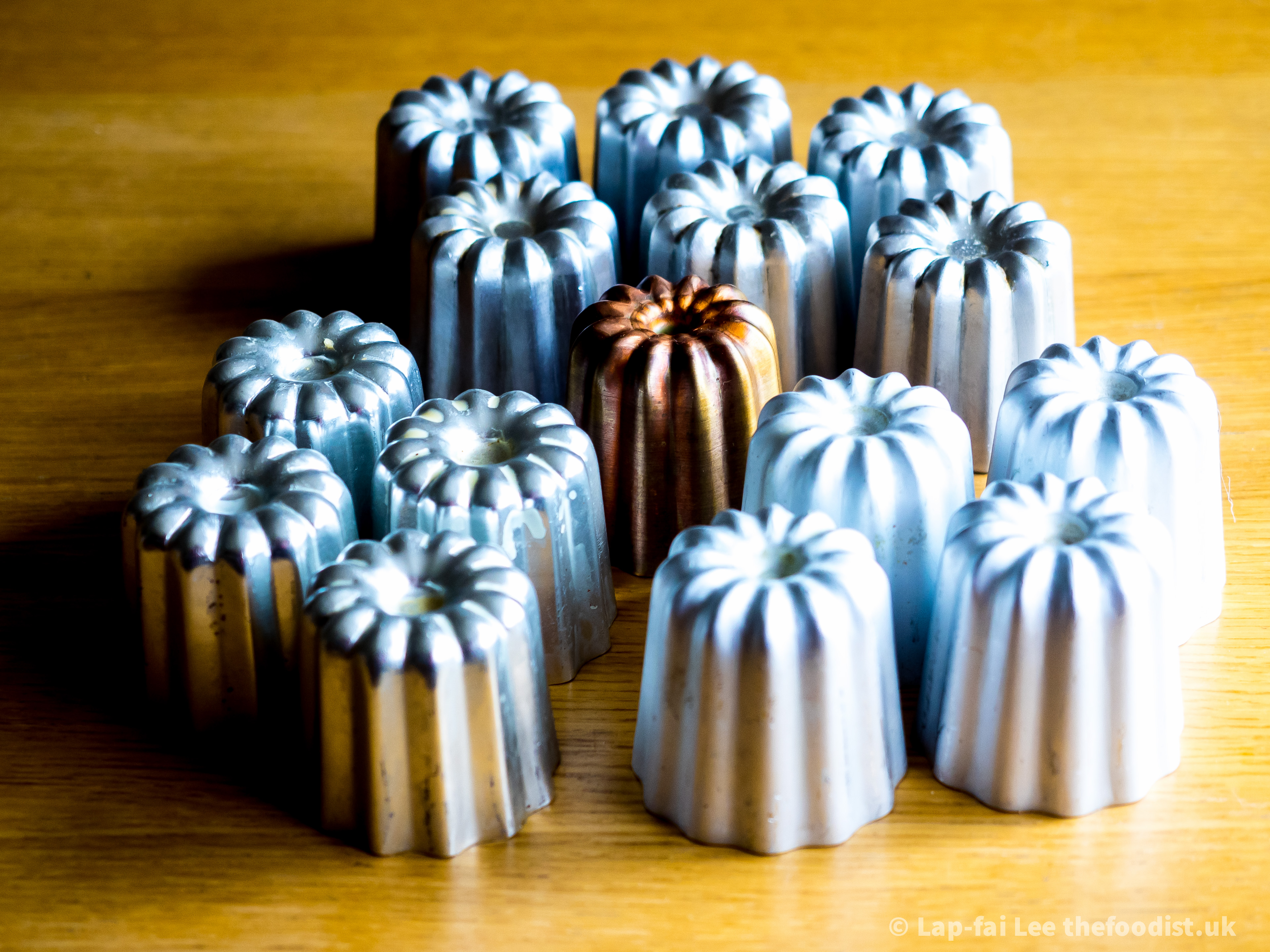 The batter is easy right? Well, it’s probably in the moulds why good canelé are so difficult to find. You can use silicon moulds and they look nice but you can’t get the really good crackling shell with them. If you’ve read this far then you know that metal moulds are the only way. If you see them buy them, they’re hard to come by. I have four generations of them, first lot were bought in Osaka, the last in Lyon (where good canelé could not be found). I bought a copper mould too to see if it makes any real difference, it doesn’t. Save yourself the 400% markup and buy the cheap aluminium ones.